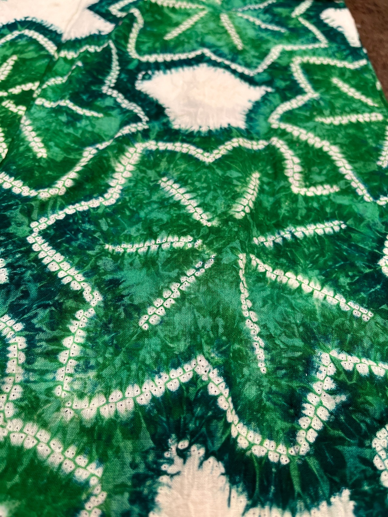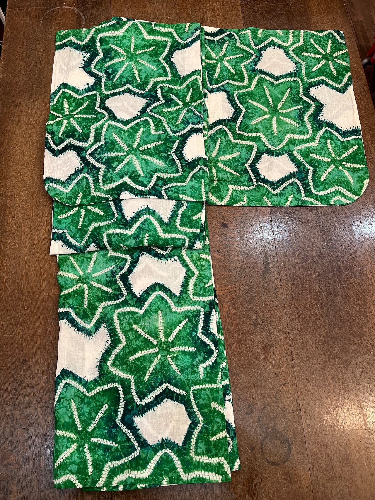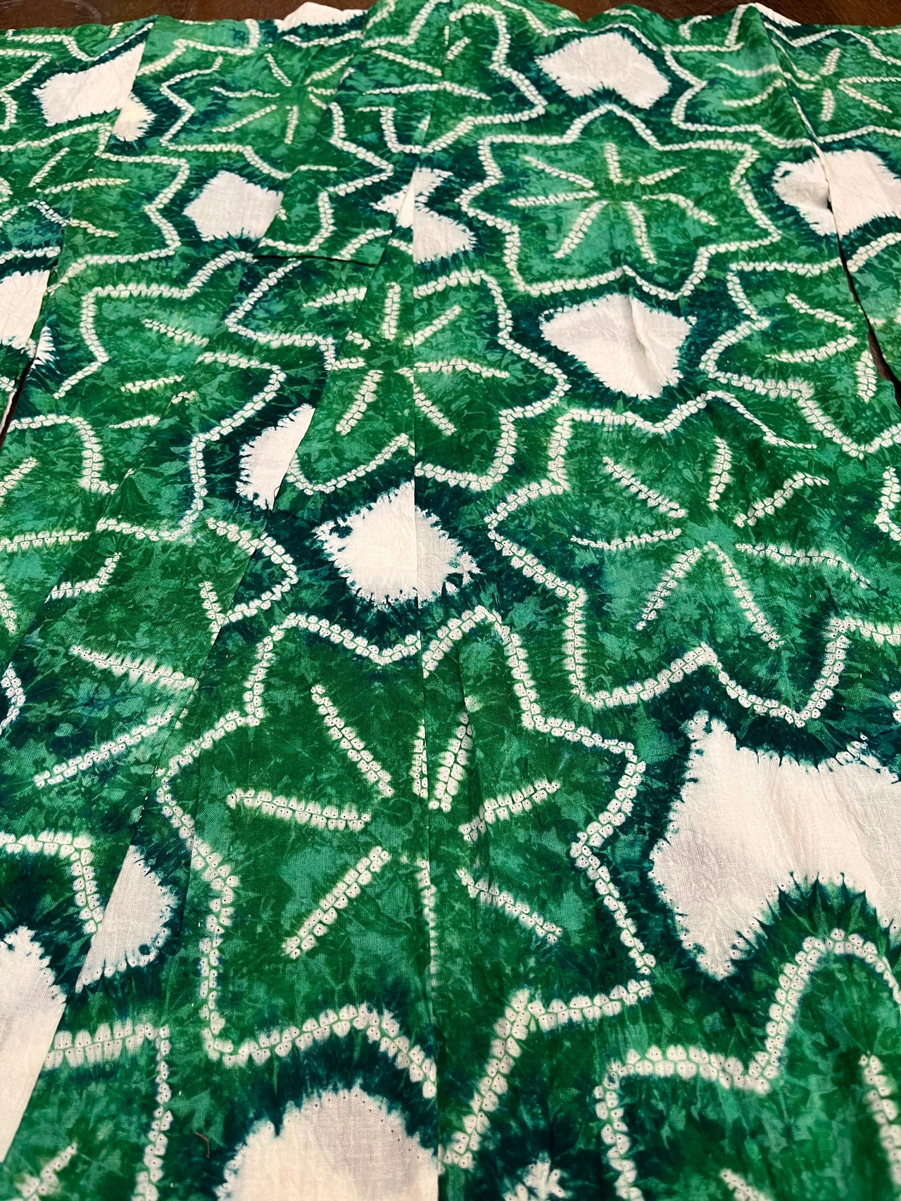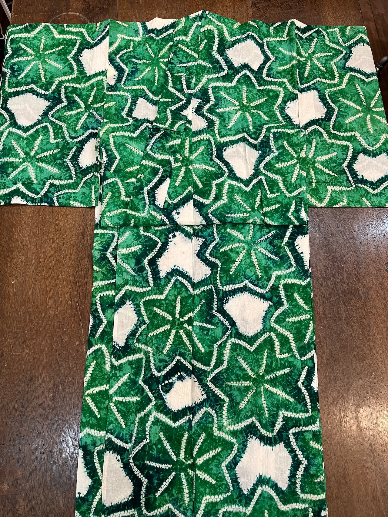 遠目からでも目を引く、鮮やかなグリーンが印象的な有松絞りの浴衣です。