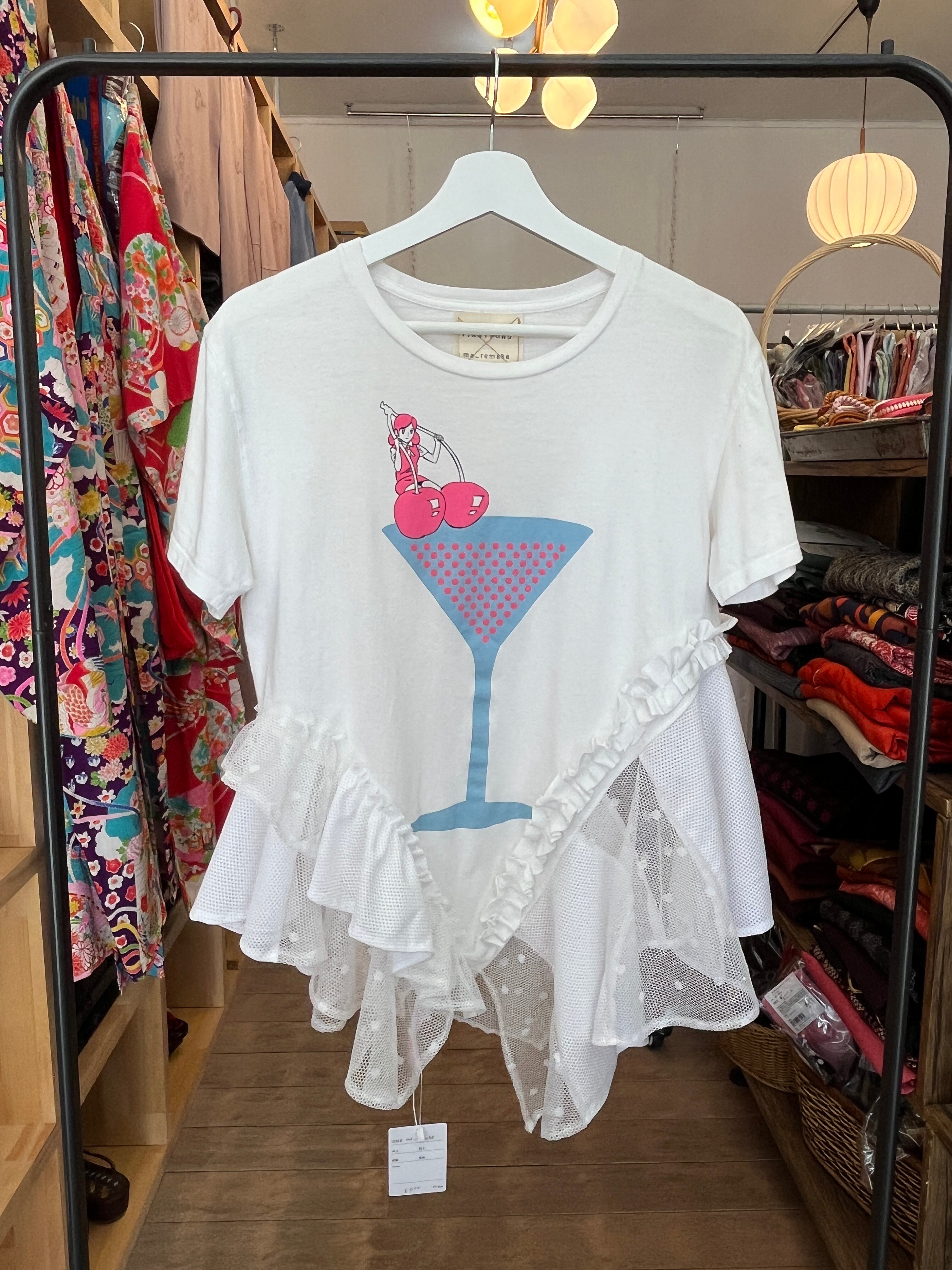 VINTAGE / USED ユニークなカットと甘めなフリルが特徴的なリメイクTシャツ。