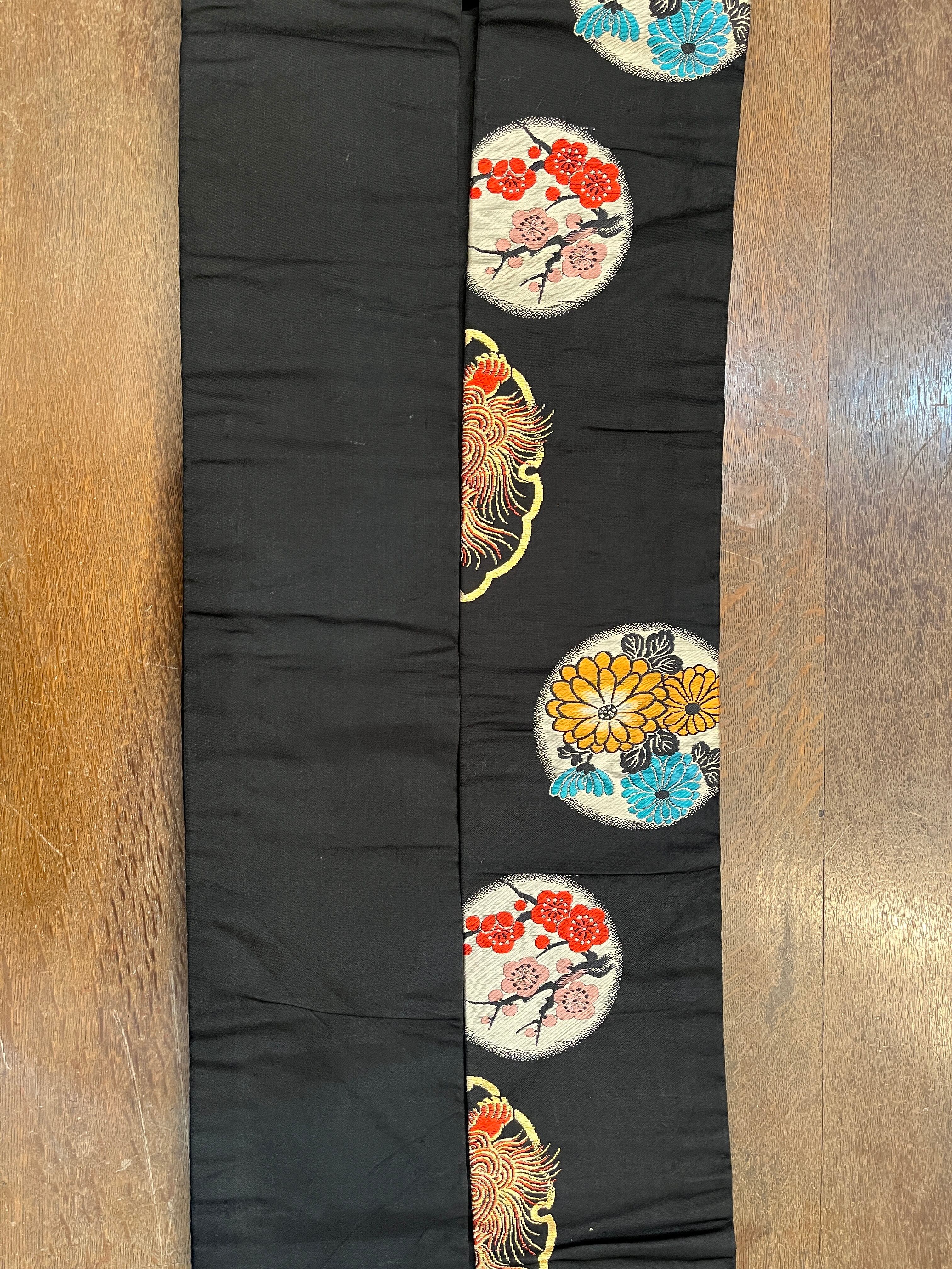 唐獅子と市松模様の古典デザインが印象的な西陣織の名古屋帯。