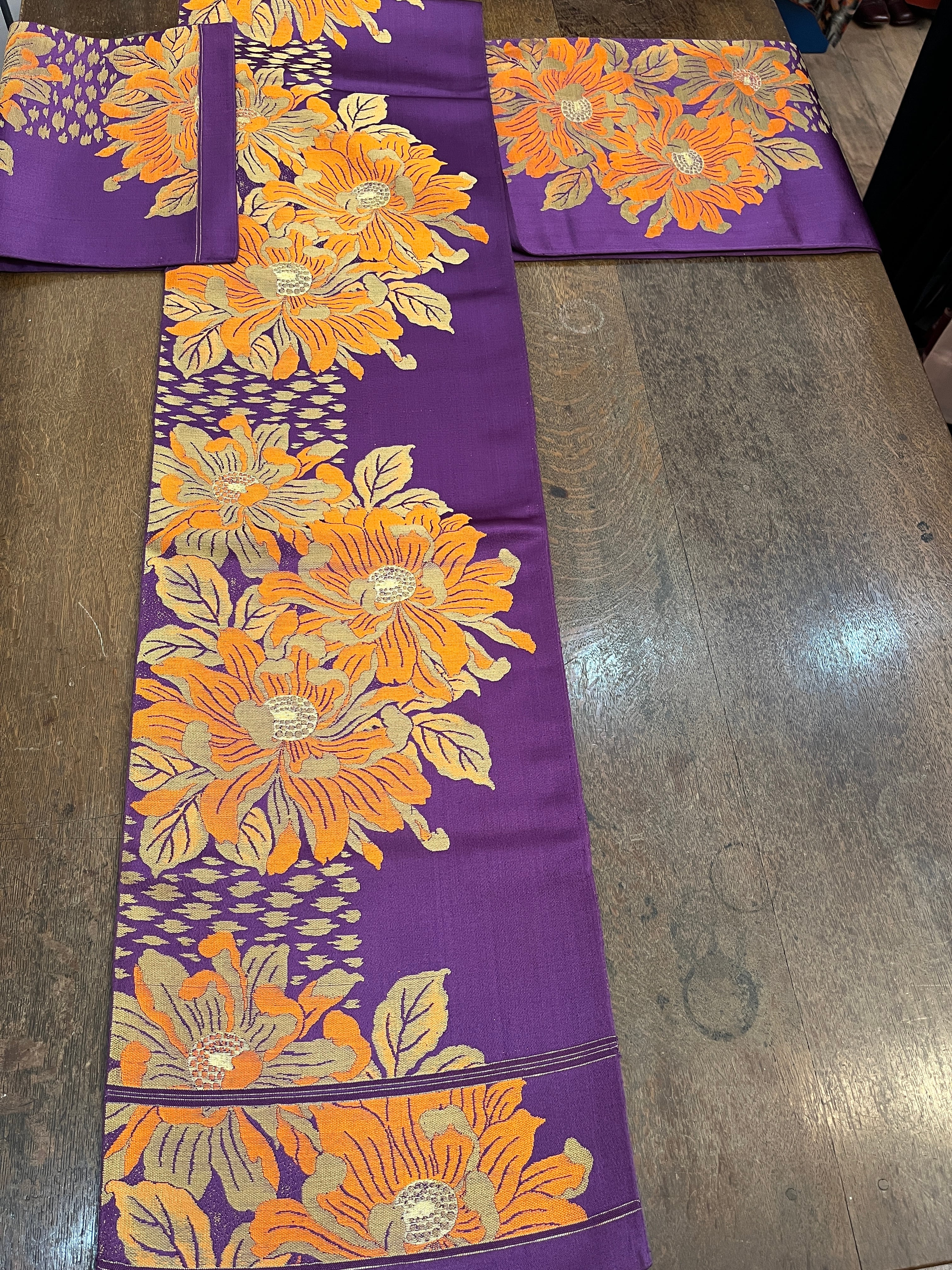 鮮やかな色使いでレトロモダンな雰囲気が特徴の長尺名古屋帯。