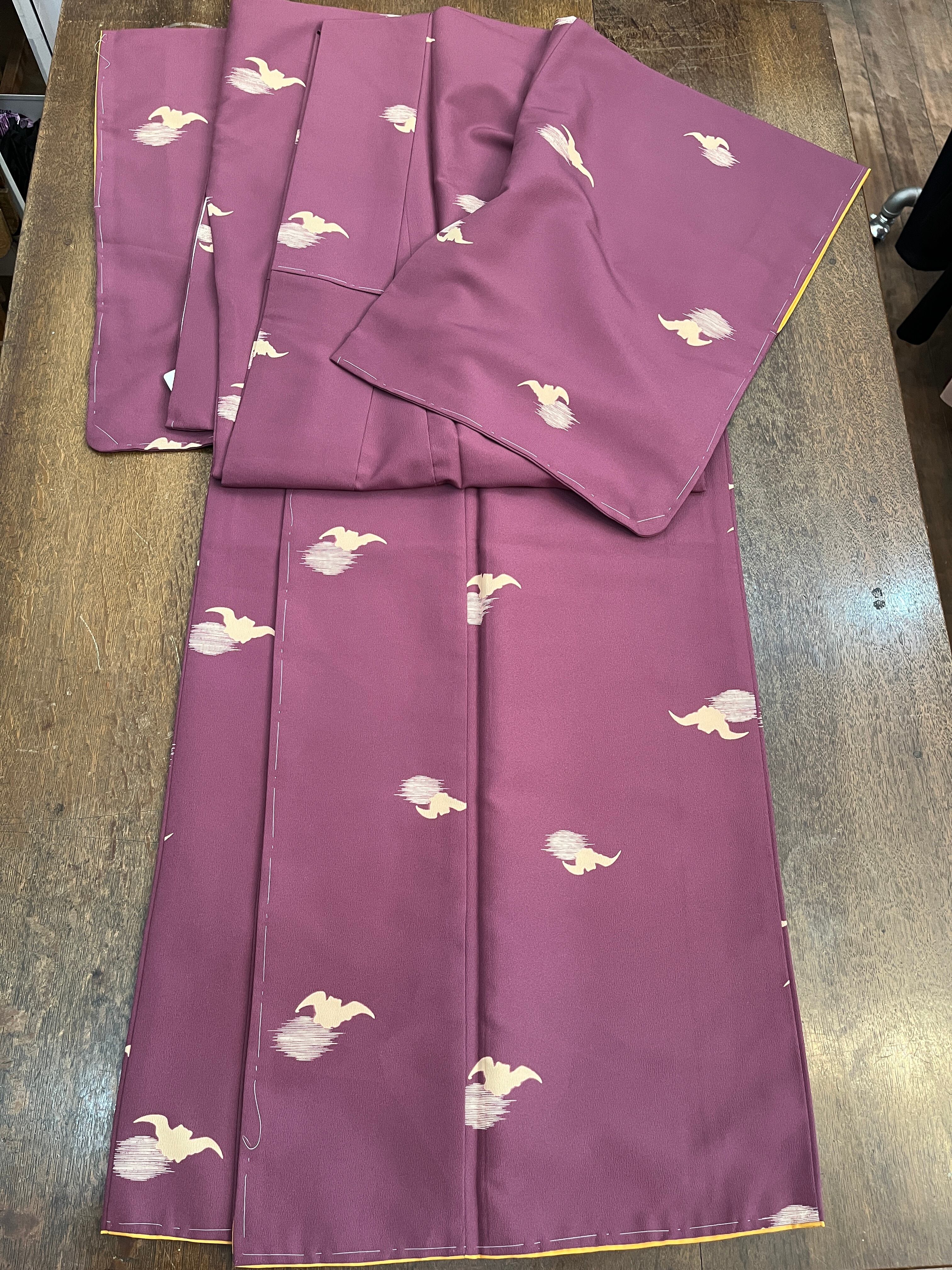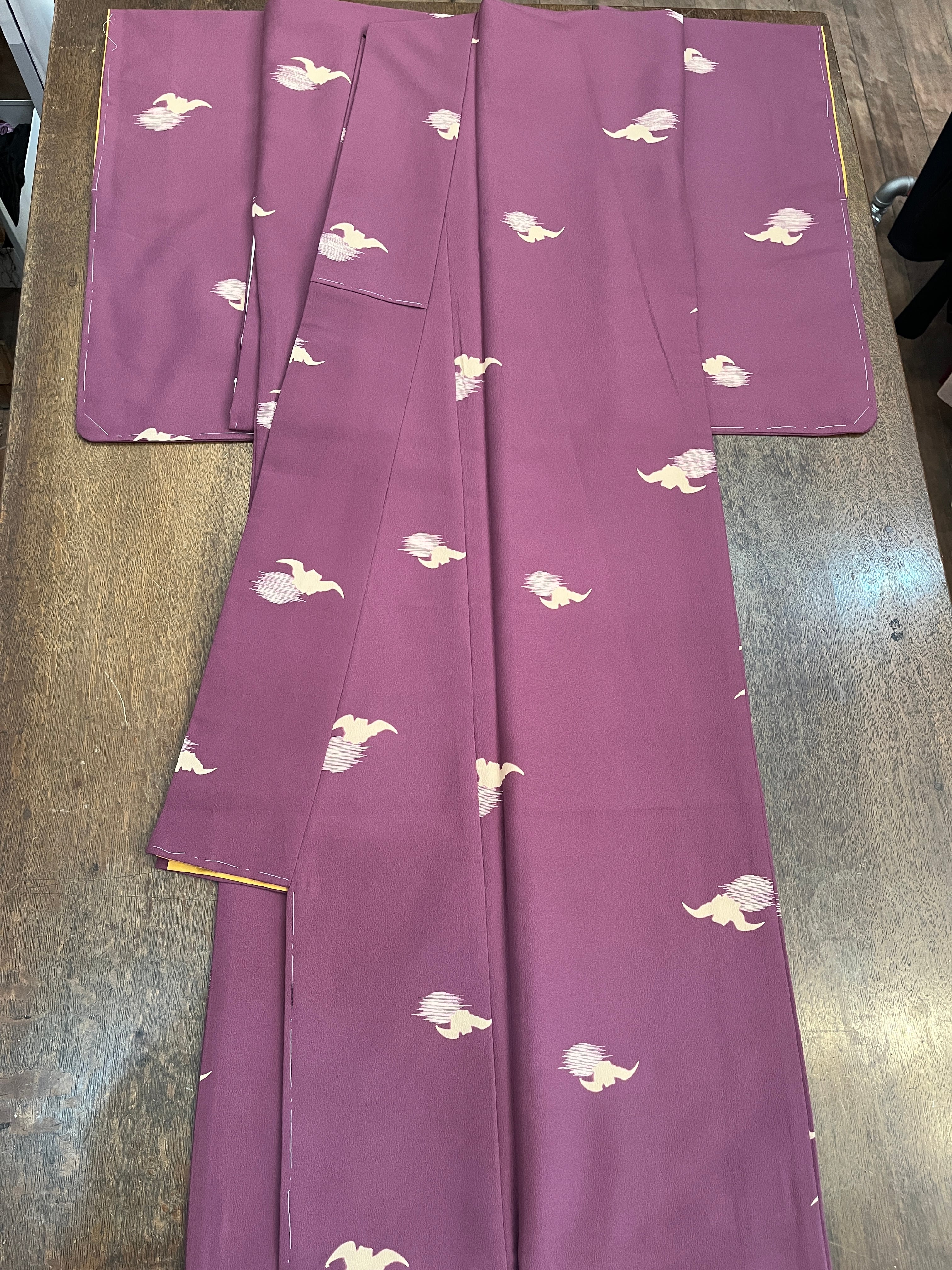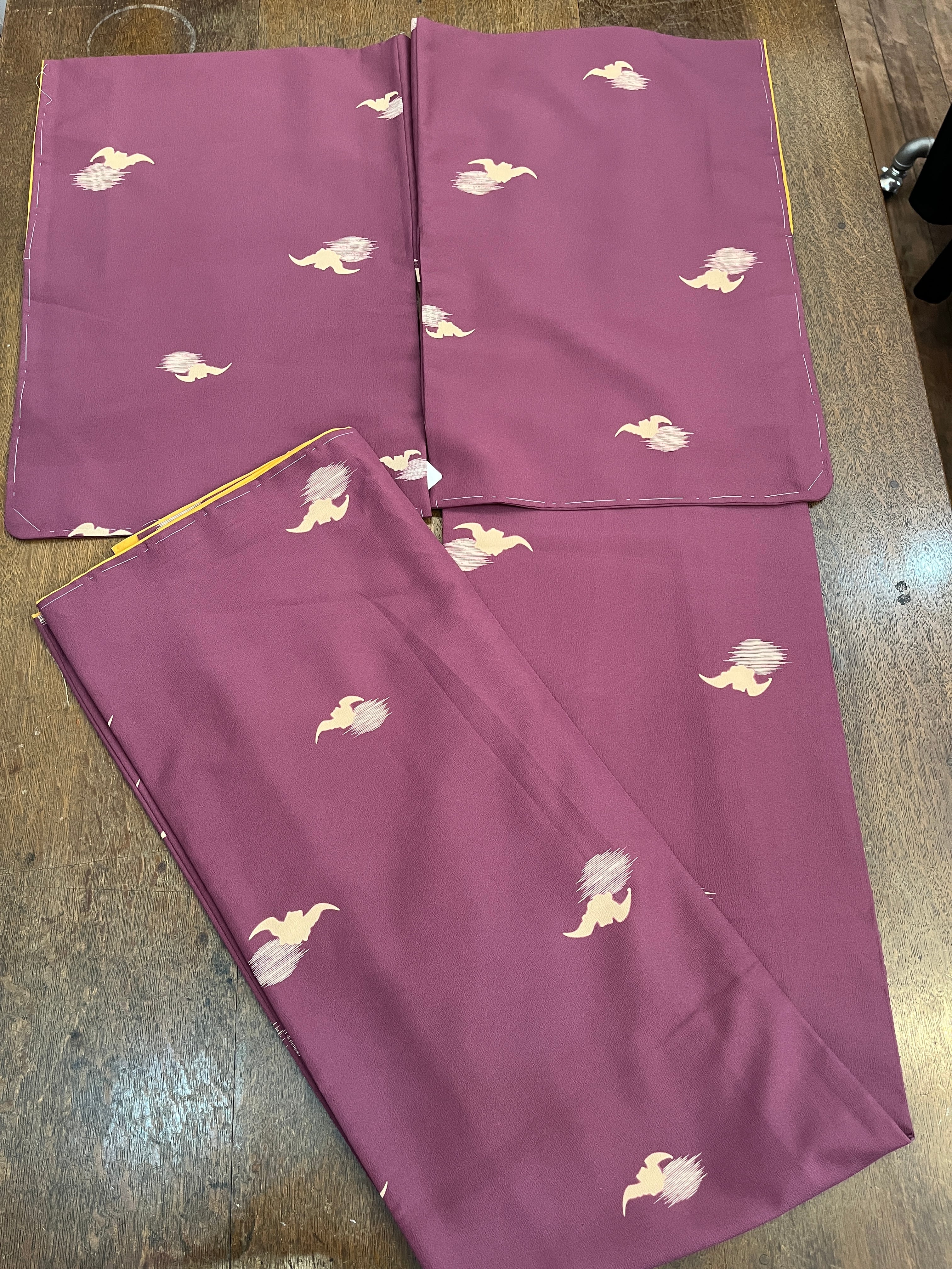 朧月夜にコウモリ柄の小紋。