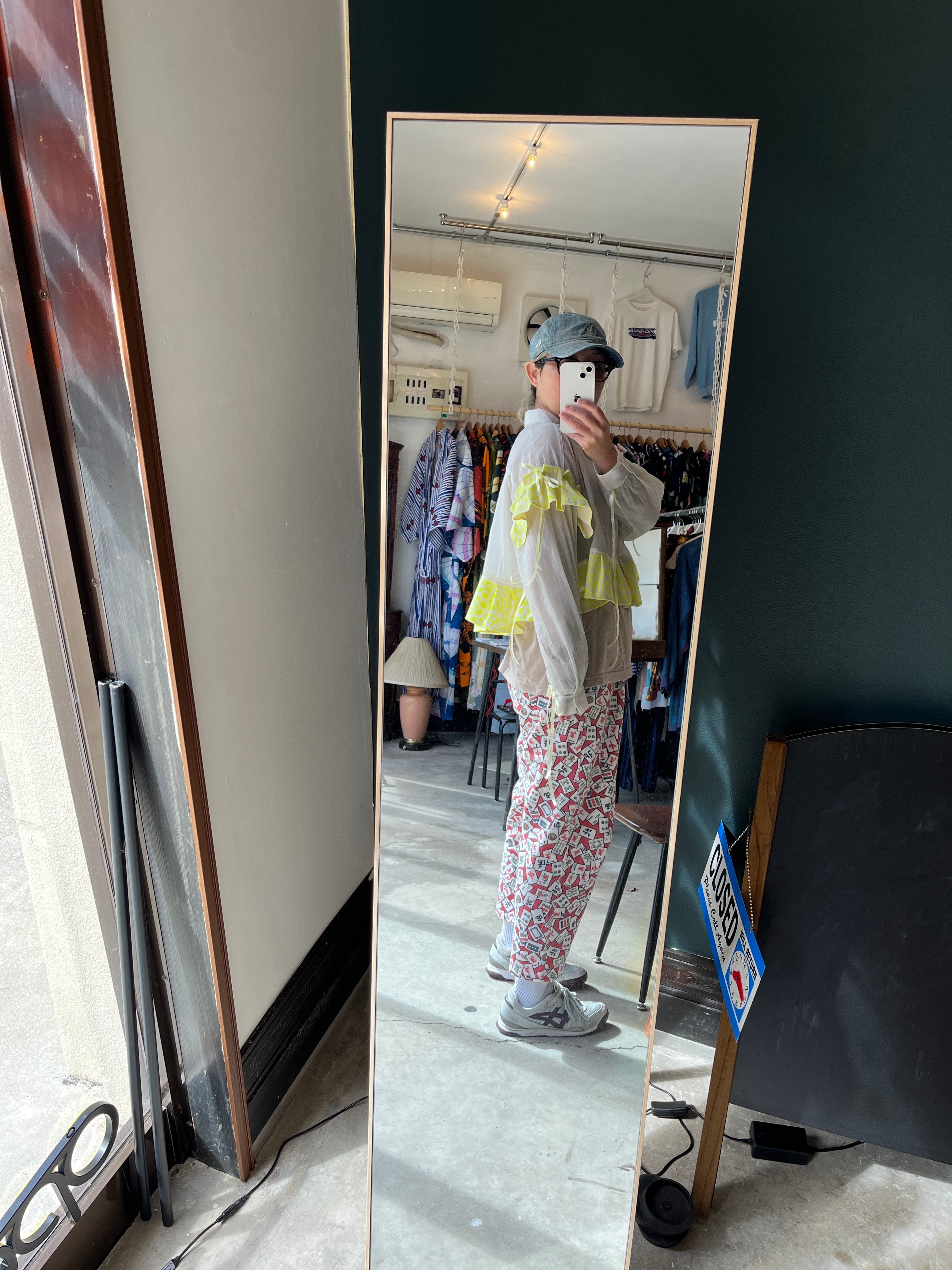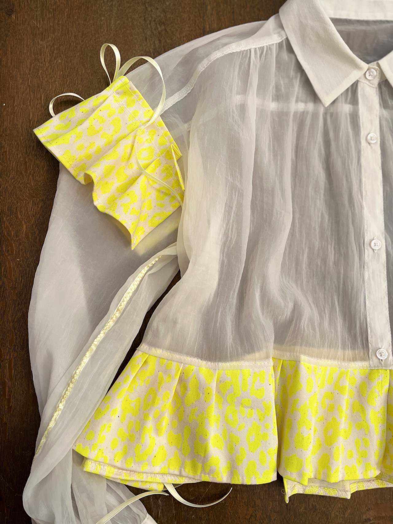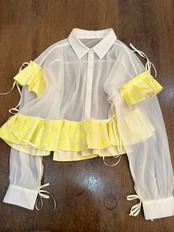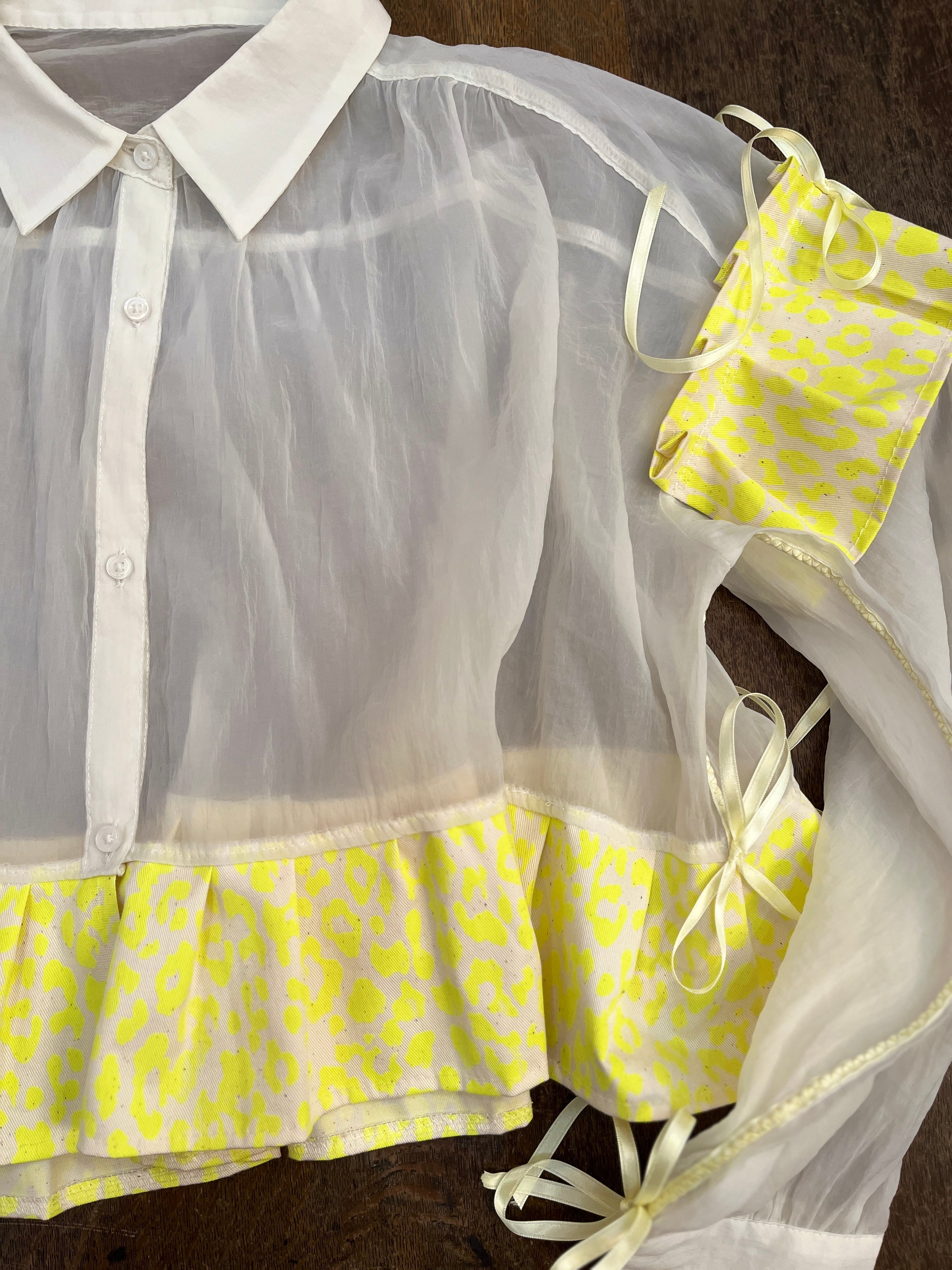 VINTAGE / USED 軽やかな印象のシアー素材と張りのあるレオパード柄のフリルによる甘辛mixが魅力的な一枚。