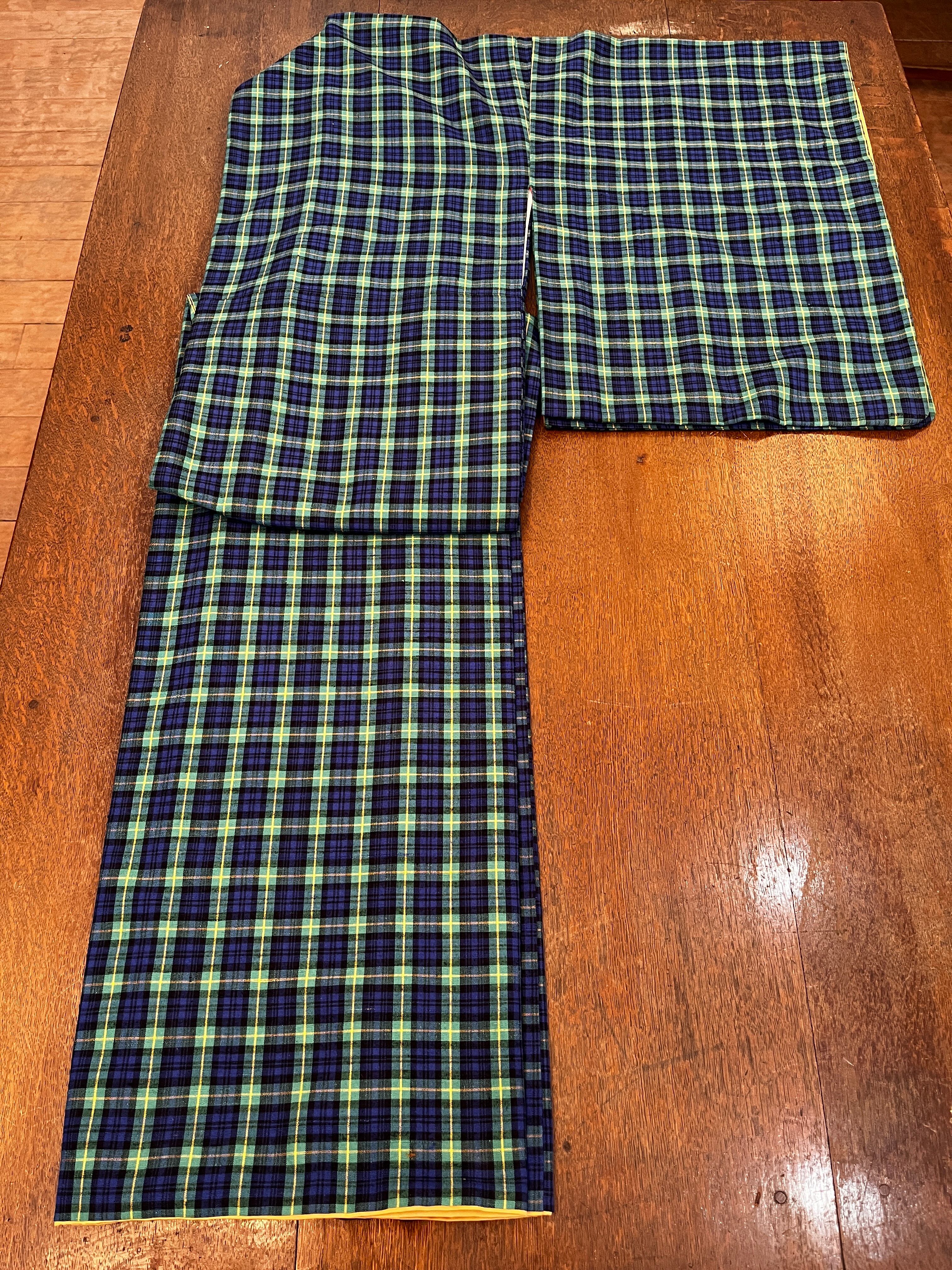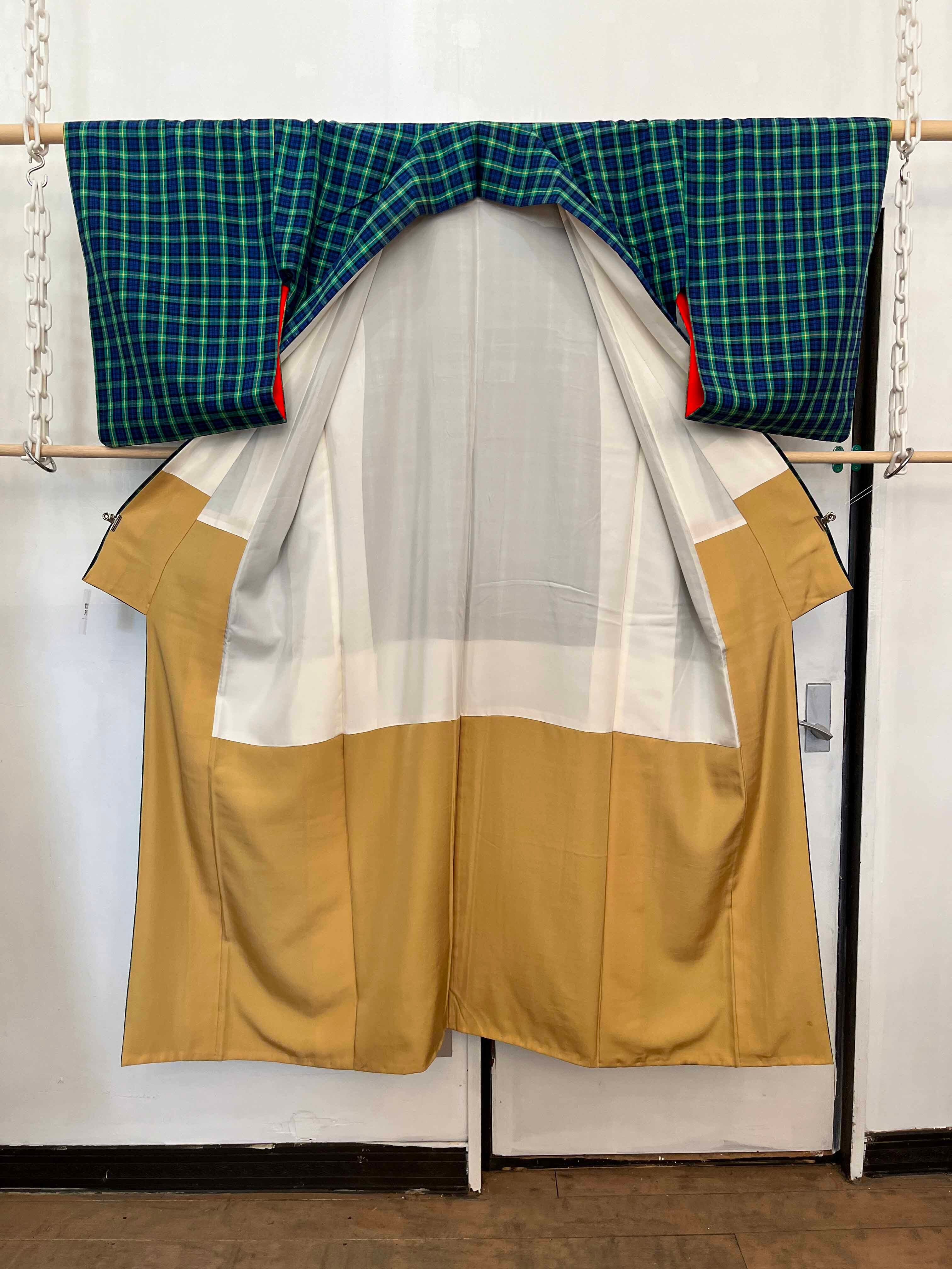 カジュアルな着こなしにも相性のいいタータンチェック柄の織り着物。